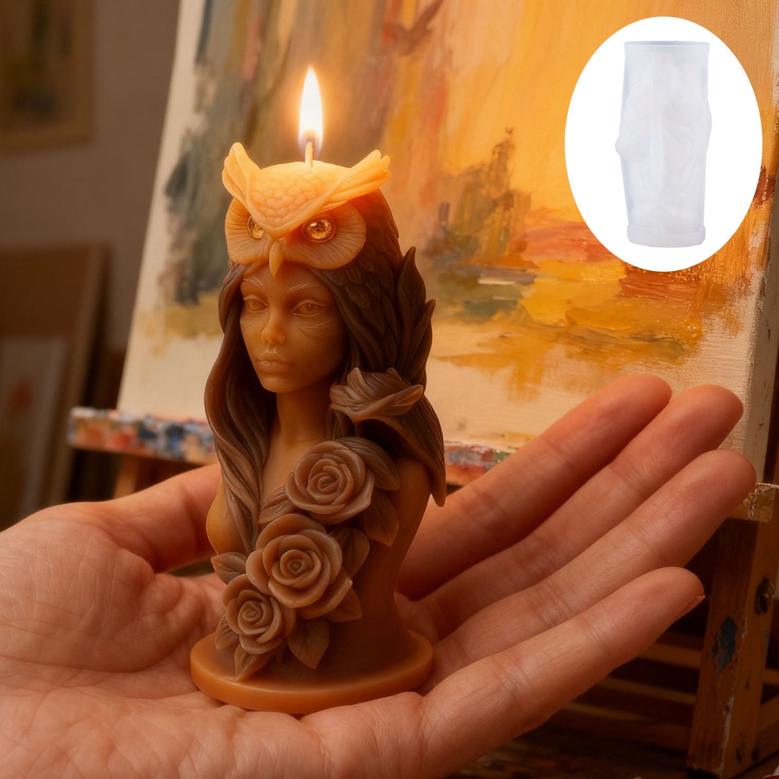 Rose Owl Scented Candle Silicone Mold
